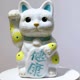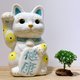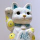 日本清水燒招財貓 花結晶 白 健康 特大 右