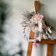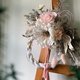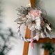 以銀白與淡粉色花材製作,同樣加入象徵豐收的各類果實與寓意「福疊」的蝴蝶花,以水引線來製作「無限」裝飾,同時也用纏繞繩體來呈現小龍的意象,祝福新的一年,能夠豐收福疊、好運無限。