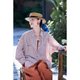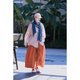 大翻領,領子扣上,是乖正的模樣,解開一粒會更舒爽些。開門襟,活頁式的立體門襟,一排橙色牛骨扣落在其間,分辨不出是小花的顏色還是小扣。落肩式的長袖,袖子長長以及寬寬的袖剋夫,也正是她的精華之一,如此完成才是完整的塵世夢。