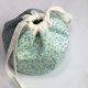 五片布拼接的圓底束口袋,每個角度都有不同的布花呈現,超級可愛~