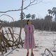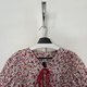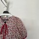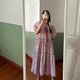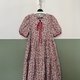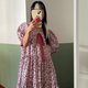 red tiny v necked layer ruffle with puff sleeve dress
