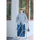自然,她不是完整通勤風,通常的藍條紋容易做的商務,要麼材質平整,要麼硬挺,要麼光潔。這塊條紋布,將紗線調粗一丟,再將密度打到合適的階段,柔中帶有筋骨,但外在又是蓬鬆的自然肌理的,如此一來,布料的氣質就會變的自然而鬆弛。