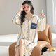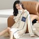 - 柔霧米杏底搭配細緻直條紋,打造清新自然的居家氛圍。襯衫式翻領設計結合胸前撞色口袋,增添俐落層次感。落肩與寬版剪裁讓活動更自在,柔軟布料輕盈透氣,無論早晨放鬆或夜晚入睡,都能展現舒適又有型的居家風格。
