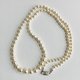 オールノットネックレスの特徴として、万が一、糸が切れた場合でも最小限で抑えられる点や、玉同士が密着していないので擦れあいにくく傷も付きにくい点、首回りにフィットしやすくなっている点等がございます。この仕様は特に海外で人気があり、比較的高品質アクセサリー類によくみられる仕様です。弊社の自社工場にて塗装したパールになります。品質の状態も維持されており、剥がれや大きな目立った傷などもございません。稀にピンホールや小さい凹み等が見られる場合がございますが、自社にて検品の上、品質に問題は無く許容範囲とさせて頂いております。