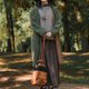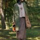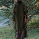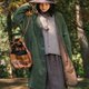 浮力森林 燈芯絨秋冬雙層V領開衫 長款外套 - 女大衣/外套 - 棉.麻 綠色