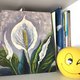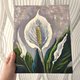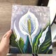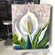 - Hand painted original white peace lily painting. Floral original art. Colorful original artwork. Floral impressionist painting - painted on panel measuring 10x12 inches. On the side front side of the flower painting the artist's signature.
