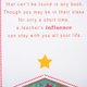 何謂教師?教師每天都在做啟發和鼓勵的事.以耐心和奉獻精神,他們教導更多在書本中看不到的內容.也許你只待在課堂上短短時間,但一位老師的影響力卻能留在你身上一輩子.感謝您,您一直都是位好老師.