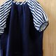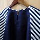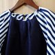 **【 拉克蘭泡袖上衣/ 深藍直紋 】**
