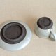 この作品は、信楽の土を使いろくろで作ったカップとソーサーに、独自に調合した釉を味わい深くかけています。優しい口当たりで飲みやすく、持ちやすいハンドルのカップです。それぞれ単品でもお使いいただけます。