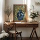 《綠野陶瓶 Green Vase Garden》由插畫家 Laras 創作,運用強烈對比的深藍與綠色調,刻畫出植物與器皿交織的靜謐氛圍。瓶身圖騰式的內嵌花草線條呼應背景蔓生的葉片,展現現代插畫中的東方禪意與自然對話。