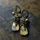 エクリプスとたわわなスモーキークォーツ、シトリン、インディゴブルービーズ、民族鈴を繋いだピアスです。