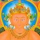 - 他的顏色是紅色,他以冥想的姿勢被描述