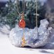 ロングに小粒のドロップのチャームは、オレンジ色のガーネットにてお仕立てしています。