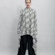 系列將原住民圖騰與現代設計元素巧妙融合:設計師解構並重塑經典千鳥紋,將烏鴉飛翔的姿態與羽翼融入幾何單元,捕捉展翅動態,創造全新印花語言。色彩上,橄欖綠象徵隱秘與深沉,熾焰紅致敬烏鴉創世的傳說之光,寂靜灰則呈現時間與記憶交錯的沉靜氛圍。印花隨模特步伐律動,如同烏鴉的翅膀在服裝上翱翔,展現動態的神秘美感。