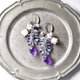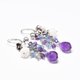 雫アメジストと小さなアクアマリン&アメジスト&ラブラドライト、白蝶貝&カレンシルバーのお花、インドシルバー鈴を繋いだピアスです。