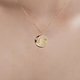 獨特的Belinda翻轉吊飾,右側以象徵熱情的飽滿天然白貝呈現,另一面以能翻轉的太陽眼鑲單鑽設計,左側則以鑲排鑽圓滿的月亮呼應,無論如何搭配皆表現浪漫兼具優雅的時尚個性