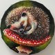 100% ORIGINAL hedgehog painting on round cotton canvas.