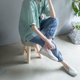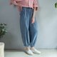 - 清涼天絲仿牛仔縮腿褲 丹寧藍 炭黑 M L