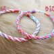 2.不掉色,因為蠟繩表面有一層薄薄的蠟,摸起來會黏黏的,觸感也比較硬,但經過佩戴一陣子與皮膚摩擦、碰水後,表層的蠟就會脫落,手環就會變得柔軟,重點是不會掉色!!不像一般的棉繩,戴久了顏色會糊掉長毛或容易斷裂