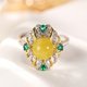 Square Frame Rhombus Rings for Women Natural Beeswax Amber Rings Zircons Crystals Hollow 925 Silver Jewelry Gemstones