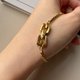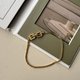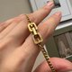 這條Givenchy手鍊採用金色扭繩鏈條,展現出優雅與奢華感。鏈條上配有標誌性的雙G logo 扣環,設計獨特且具辨識度,增添了時尚氣息。整體結構輕巧簡潔,佩戴舒適,適合日常或正式場合搭配。