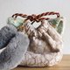裏にふくふくキルト芯を貼り全体的に柔らかく膨らむように仕上げました。紐をぎゅっと引っ張ると耳がしっかり立ち、立派な猫ちゃんになります。