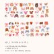 - 下載解壓後是整張貼紙(透明底、未裁切,原因是自己自由裁切使用起來會更加靈活有趣 ;) 6張PNG格式透明底電子版素材,小元素可任意裁出約75個左右;