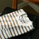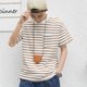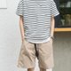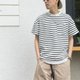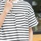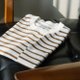 適度寬松的剪裁和斜切口袋是這款T-shirt的特色,擺脫條紋TEE一貫死板的形象。使用純棉的雙紗面料,手感厚實,不易變形。