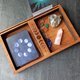 Looking for an something special to store your small magic trinkets? This hand made and hand painted wooden open box - tray is created to keep personal things together. It has a space enough to keep tarot cards and a split to display your daily card to remember intention of the day. Moon phases ornaments makes this box an attractive place to keep mystic and sacred things. Perfect home decor addition!