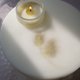 そのやさしく繊細な姿が、白いワックスに映え、まるで静かな水面に漂う植物のようです。