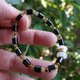 主珠和田白玉及墨玉桶珠玉質油潤、細膩無雜質,搭配鈦晶當配珠,造型脫俗具時尚感,整體感覺晶瑩耀眼,氣質優雅,值得珍藏!