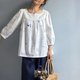 小日子/illustration系列設計師印花雙層棉紗方領七分袖上衣/純棉