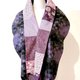 這件作品由各式各樣不同的紫色純棉布料共譜,有淺色的、象徵春日的日式花卉、深紫的、祈求一切勝利的葫蘆圖騰、有昭告著季節感的梅紋、有象徵著生命力的水波紋...偶有發現點綴在布料上的紫色Swarovski燙鑽,低調的閃耀讓布料有更多表情,讓各種不同的日式紋樣在紫色中各自找到棲身之所。背面是毛料與絲質的混紡,深淺不同的幾何格紋展現出空間感,溫柔的襯托另一面的日式傳統紋樣。