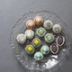 小さな作品を作るとき、まずメインのビーズを選びます。 そのビーズがいちばん美しく見えるように、隙間なく刺繍を重ねていくと── 色とりどりのビーズたちが、まるでおしゃべりしているような、にぎやかな仕上がりになります。