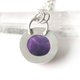 這是一件圓形的紫水晶墬,採用銀線與銀珠圍繞,銀線部分緊密,部分鏤空,增添變化。圓形也產生圓滿的意象。 紫水晶的紫色是因為鐵的緣故,硬度 7。 材質: 999純銀/ 紫水晶 14mm,部分硫化處理。 整體高: 2.4cm,寬: 1.8cm (含墬頭) ***不附項鍊。歡迎至銀鍊區購買。有18吋925銀鍊可供選擇。 ***購買含飾品盒、拭銀布、厚夾鏈袋、保養需知,禮物袋。 ***不配戴的時候,請以密封袋收納,氧化變黑時,請以拭銀布擦拭,即可恢復光澤。 產地/製造方式 台灣 手工製造