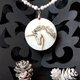 - Unicorn necklace, miniature painting on pearl pendant. Norse necklace with howlite and agate beads, real stone, mother of pearl pendant. Like witch craft jewelry. Wearable art. Interesting gift idea for a romantic person.