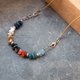 This choker consists of Lapis Lazuli, Apatite, Aquamarine, Jaspers, Tigers eye, Howlite. It is about Portugal: ocean (Aquamarine), 300 sunny days yearly (blue apatite), roofs of houses (red jasper), walls - howlite, calçada or stone pavement (Yellow jasper), custard cream cupcakes (pastel de nata) - tigers eye.