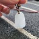 【親翠】天然翡翠 白冰大橢圓無事牌微不對襯調整式繩鏈
