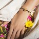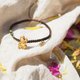 Tridevi Laksmi Lemon Jade Stone Bracelet | Favora - Trinity Veladee Trinity Collection meticulously designs and crafts exquisite jewellery inspired by these six deities. The collection offers two distinct styles: Colorful and Elegant. Each piece is a testament to precision, quality materials, and intricate detailing. Whether you're searching for a unique gift for yourself or a loved one, Veladee Jewelry caters to everyone's preferences. The Tridevi Goddesses represent the epitome of beauty, power, wealth, and knowledge in Hinduism. Saraswati, Lakshmi, and Parvati, each with distinct attributes, empower individuals in different aspects of life. Adorned with divine jewellery, these goddesses inspire confidence and prosperity. Devotees seek their blessings to enhance various aspects of life, incorporating the goddesses' beauty and grace into daily existence. Laksmi Bracelet // Charm materials: polished 925 Sterling Silver with 18k gold plating // Bracelet materials: dark brown nylon cord 0.8mm // Beads: natural lemon jade-faced beads 3mm // Bracelet Size Wrist fit: 13 - 22 cm, adjustable sliding knot Heartmade + handcrafted in every detail. Every handmade item is quirky and unique, which makes it special. Handcrafted and fully processed produce in Thailand.
