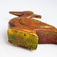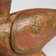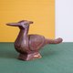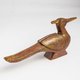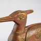 硬木に金属を打ち付けて装飾した豪華な鳥の置物。年代は不明ですが、底面を中心とする黄色と緑のペイント(インドの国旗の色ですね)が、あちこちに飛び散っており、可愛らしい年代感を醸し出しています。