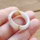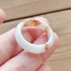 【親翠】天然翡翠 冰牛奶硃砂楓葉紅手指鐲14.5號戒圈
