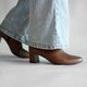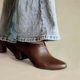 手工皮革包覆鞋跟是精品呈現的工序,會和量產規格化方式有差異。鞋楦與鞋跟的設定,更是穩定度細膩的關鍵。考量到生活中穿脫之間的情境外,靴口的收放細節,4.5公分的高度是身形延伸的完美比例。
