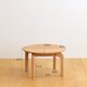 無垢材を使った円形の小さなローテーブルです。熟練の職人によるなだらかな曲線が木目の美しさを際立たせます。食事中やティータイム、読書の時間などに、ちょっとしたものを置くサイドテーブルとしてお使いいただけます。84cmのローテーブルと合わせたときのバランスも絶妙。シンプルなデザインなので、和室にも気持ちよく馴染みます。