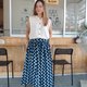 設計精美的印花棋盤圖案彈性後腰裙。布料非常柔軟,穿著非常舒適。側邊有拉鍊,兩側有口袋,超實用。