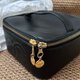 這款香奈兒方形 Vanity 採用經典荔枝牛皮打造,耐磨實用又散發奢華氣質。設計俐落,頂部手柄方便攜帶,正面壓有經典 CC logo,搭配金色雙拉鍊頭,細節盡顯高貴。可單用作化妝收納包,亦可加扣鏈條變成斜揹包,實用度與美感兼具。