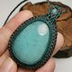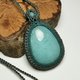 異極礦/透光冰花-蠟線圖騰包框設計/項鍊可調整長度 - 項鍊 - 半寶石 藍色