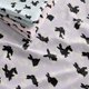 源自腦海裡浮現的黑兔剪影,從素描的日常,延伸為插畫般的童趣印花。加入輕盈的小白兔後,畫面多了陪伴的節奏,跳動出 純真、靈動、守護 的意象。