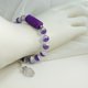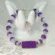 天然紫雲母回紋雕刻桶珠 紫白分明紫水晶 白水晶原礦 銀飾手鍊