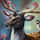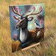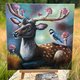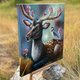 The unique fantasy painting of a deer with mushrooms on the horns. Eye-catching and attractive plot. The artwork is made with professional acrylic paints on a stretched cotton canvas. The plot is one of a kind.