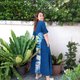 Maxi Indigo dress tie dye big line in front and back.